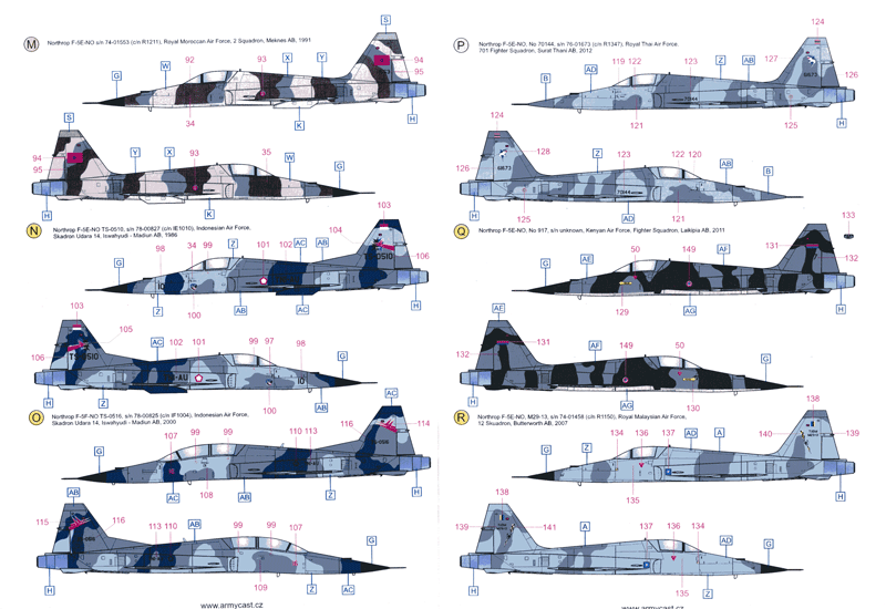 A mass of F-5E/F's from Bahrain, Brazil, Chile, Indonesia, Kenya, Malaysia, Mexico, Morocco, Soviet Union, Thailand, Tunisia, USA, South Vietnam and Vietnam
