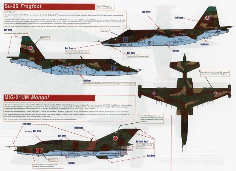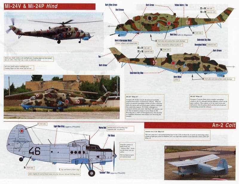 An-2 Colt, L-29 Delfin, L-39 Albatros, Mi-8T Hip, Mi-8MT Hip, Mi-24D Hind, Mi-24P Hind, MiG-21UM Mongol, Su-25 Frogfoot, Su-25UB Frogfoot and UH-1H Huey