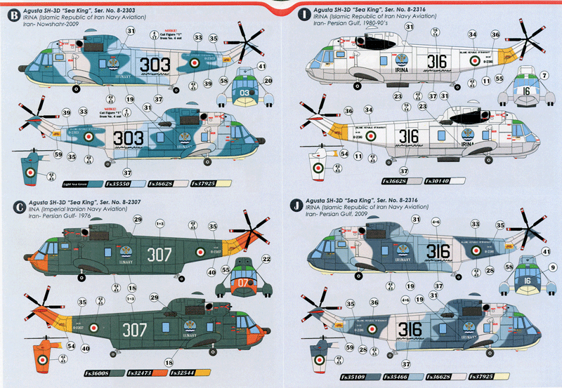 A great selection of Sea King SH-3D options on this sheet from the Iranian Navy since the early 1970's.